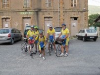 Après le Bleymard et après avoir admiré le château de St. Julien du Tournel nous arrivons à Bagnols les Bains, il est 11h 50, nous commençons à avoir faim. Est-ce que nous continuons encore un peu au risque de sauter le repasClaude, qui n’a pas compris les recommandations du Ministère de la santé a laissé son casse-croûte dans son frigidaire au lieu de faire l’inverse, a peur de terminer l’étape le ventre creux et nous convainc de rester à Bagnols pour manger. Finalement nous avions tous faim et avons apprécié le repas. Le serveur était étonné de voir le nombre de bouteilles que nous descendions (une douzaine). Heureusement ce n’était que de l’eau car après avoir rempli les bidons nous attaquons le col de Loubière sous la chaleur.