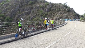 À la sortie de la ville, nous attaquons par un sérieux mais court raidillon qui nous amène sur les rives du lac de Villefort enserré dans un écrin de verdure. Le paysage surprend agréablement ceux qui ne sont jamais venus dans le coin et ne laisse pas indifférent les autres.